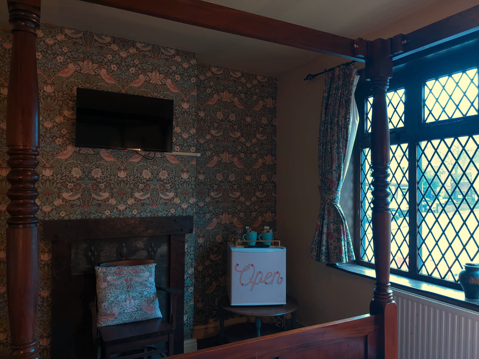 Each room has a luxurious king size four poster bed, en-suite bathroom with a walk in shower, TV & DVD player, and hot drink facilities.